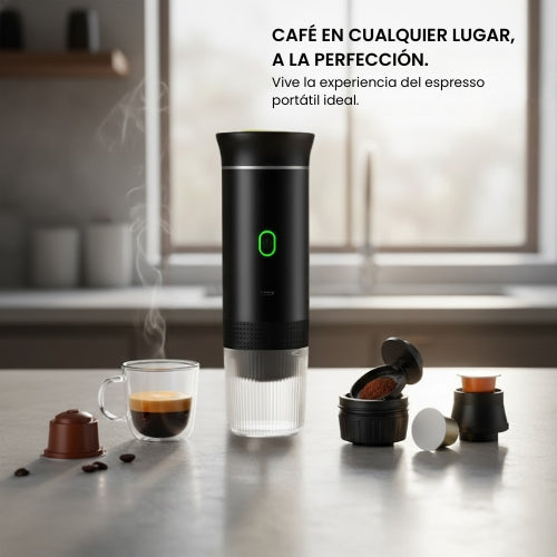 • Muy útil y fácil de usar. La cafetera calienta el agua con solo apretar un botón y el café sale directo y caliente. Ideal para no depender de enchufes ni de otras máquinas.